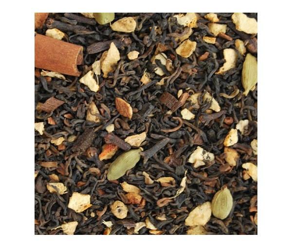 Ingredientes: Té rojo Pu Erh, cáscara de naranja, trozos de canela, trozos de vainilla, trozos de jengibre, cardamomo, clavo y aromas.